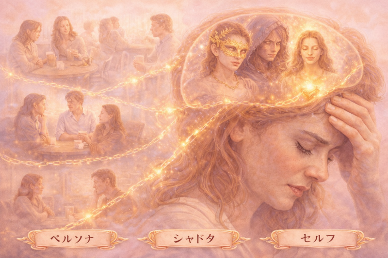 - 社会で生きるために身につけた「役割としての自分」。良い人、期待に応える人、しっかり者。
